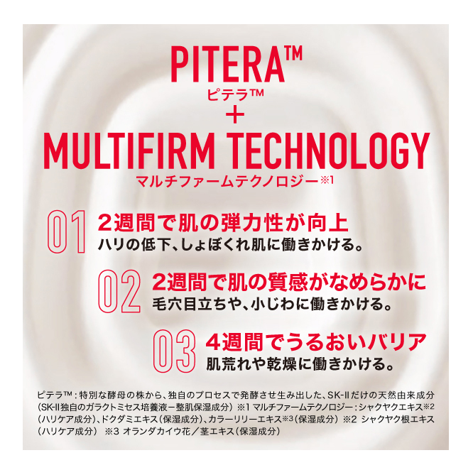 1. Skin power science that leads to 3 conditions for firm skin: moisturizing barrier, smooth texture, and high elasticity.
