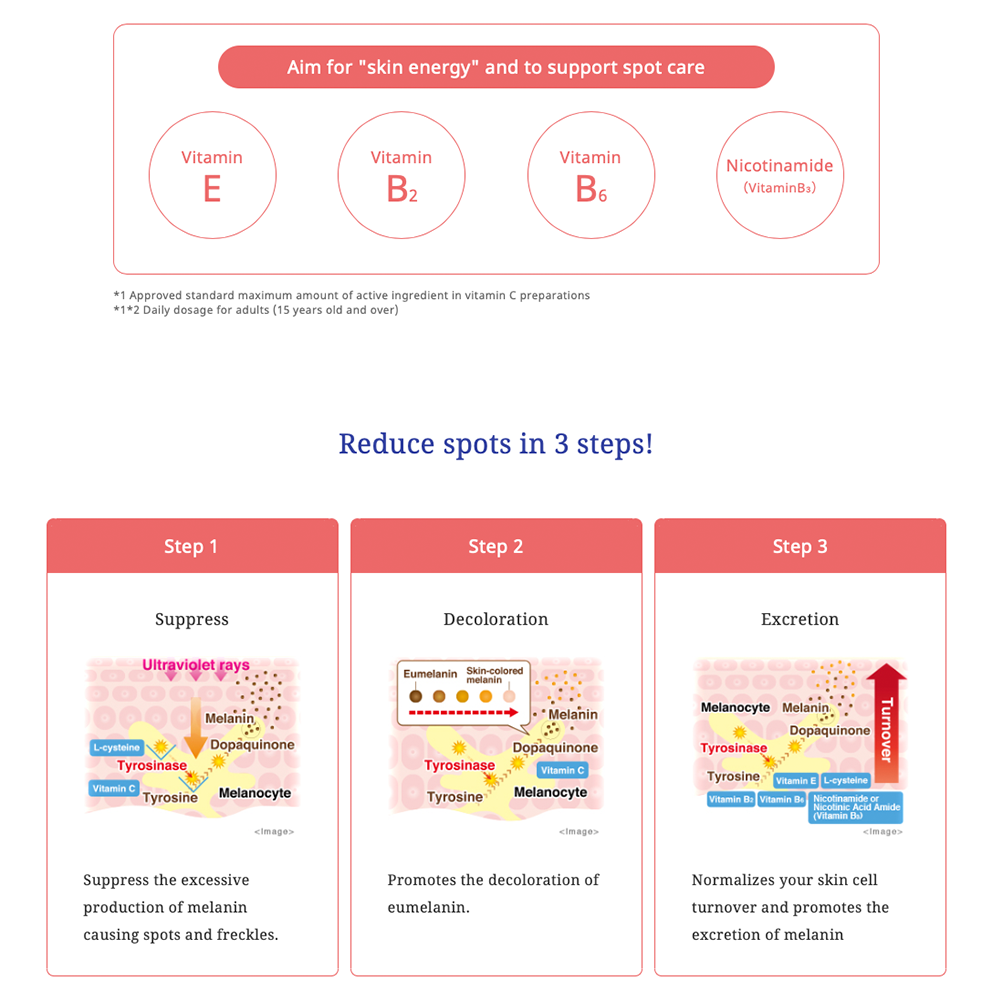 Transino WhiteC clear 120 is designed to alleviate symptoms such as spots, freckles, and pigmentation caused by sun exposure or rash. It also serves as a Vitamin C supplement to support physical fatigue, pregnancy and lactation, recovery from illness, and aging-related decline. Additionally, it helps prevent bleeding from gums and nosebleeds. If symptoms persist beyond one month, consult a healthcare professional. Recommended dosage: Adults (15+ years) take 2 tablets twice daily; children aged 7–14 take 1 tablet twice daily. Not suitable for children under 7 years.